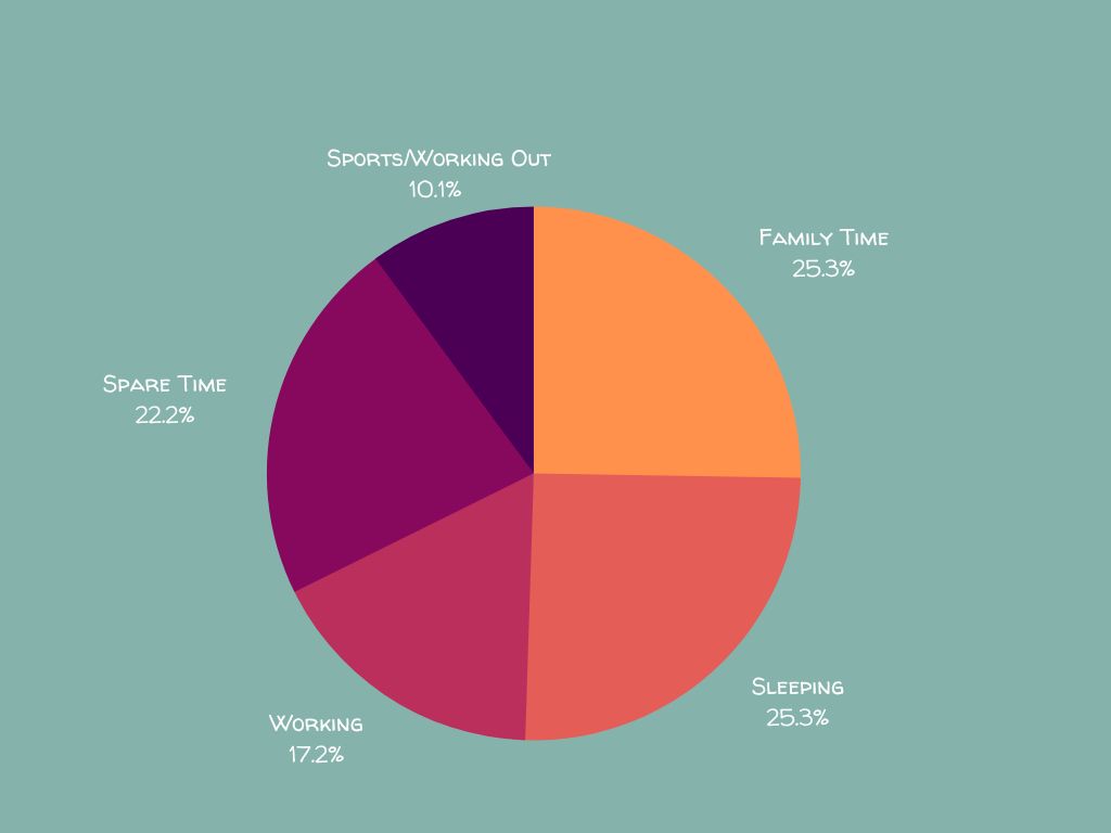 2- Once you have the hours calculated, find their percentage of time for the week and create a circle graph. This visual reference is helpful at figuring out what percentages are allocated where.