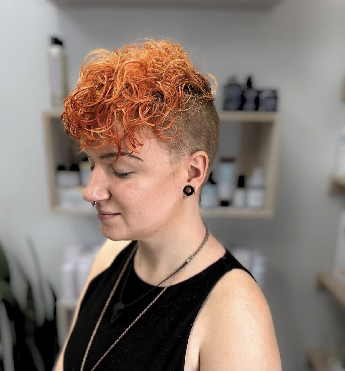 Having a look that is not defined by the status quo is quite fun. There is so much play to be had in finding the right look. We recommend having your hair shorter than the chin and cheekbone or longer and narrower than the cheekbones. Shags are a great look, and are easy to style, as well as maintain. Here are some fun looks we have done and recommend!